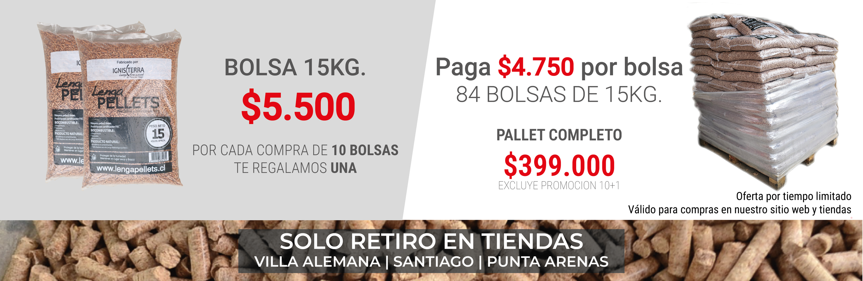 Pellets de Madera Nativa (Lenga) con excelente poder calorífico.