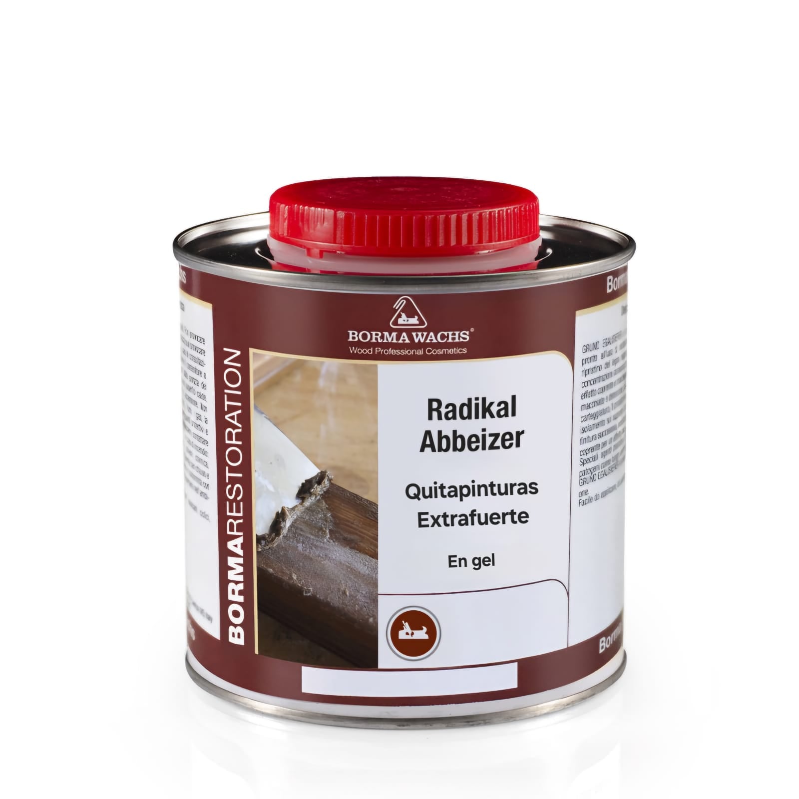 El Radikal Abbeizer de Borma Wachs es un potente removedor en gel diseñado para eliminar con eficacia barnices y pinturas de distintos tipos, incluyendo duco o nitro, sintéticas y poliuretánicas, sin alterar la tonalidad natural de la madera. Su fórmula es libre de cloruro de metileno y no es corrosiva, lo que lo hace más seguro y adecuado para trabajar tanto en superficies horizontales como verticales gracias a su consistencia.